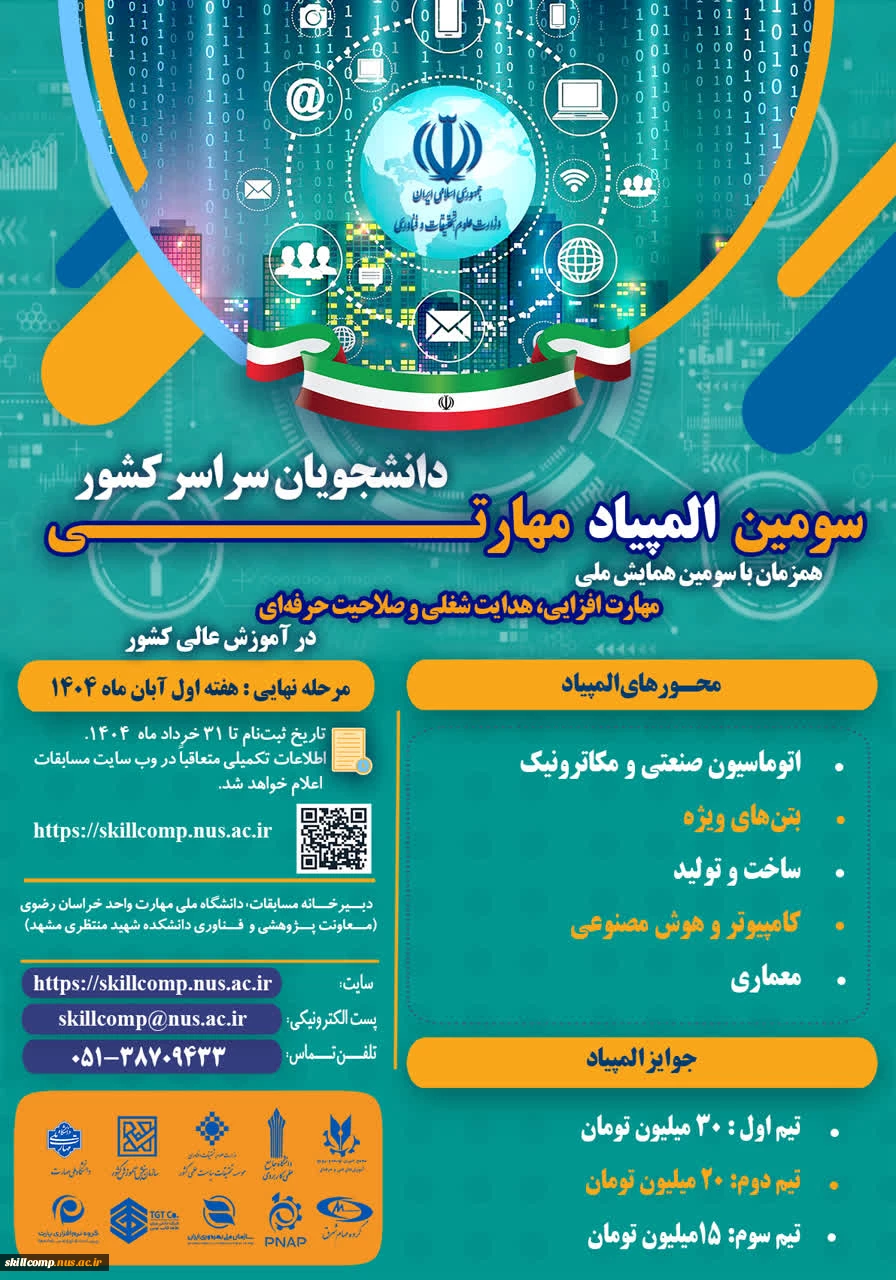 امتیاز دهید : تعیین زمان برگزاری محورهای ساخت و تولید - اتوماسیون صنعتی - معماری در سومین المپیاد مهارتی دانشجویان سراسر کشور در سال 1404 2 شنبه 8 شهریور 1404 ساعت 7:59